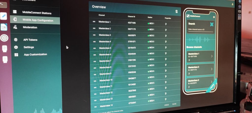 “Bring your own Device”-Audioübertragung über das lokale WLAN direkt auf das Endgerät des Teilnehmers. Wir verfügen über praktische Erfahrung mit den Sennheiser MobileConnect Systemen in größeren Setups. Dabei ist es möglich das System an Ihr vorhandenes WLAN anzubinden, oder aber auch ein dediziertes WLAN hierzu zu bauen.